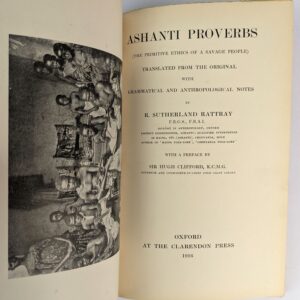 Oxford: The Clarendon Press, 1916.Translated from the Original with Grammatical and Anthropological Notes by R. Sutherland Rattray. With a Preface by Sir Hugh Clifford. This copy signed by the author to the front free endpaper.