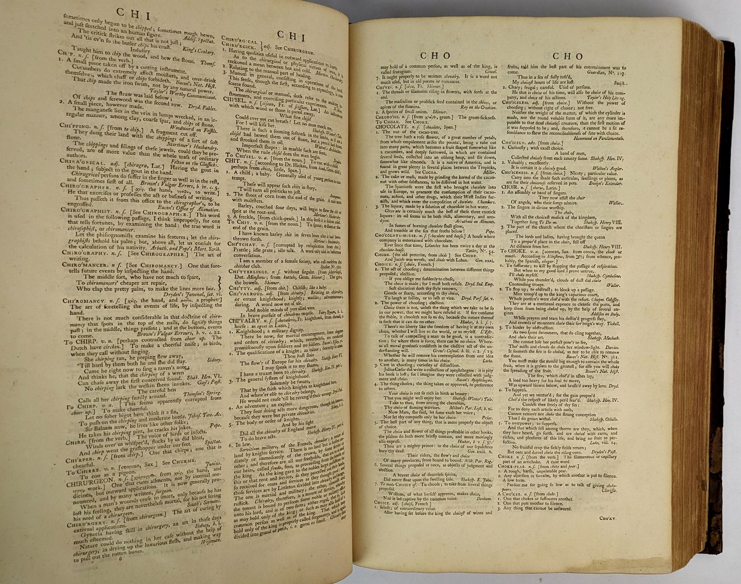 In Which The Words are deduced from their Originals, and Illustrated in their Different Significations by Examples from the best Writers. To which are prefixed, A History of the Language, and An English Grammar. The Paton Collection copy with the bookplates of Skene Library, Mr. Wiliam Agnew Paton (The Century Club, New York), and Stewart Paton. A sturdy and very presentable first edition of one of the landmark works of the English language.