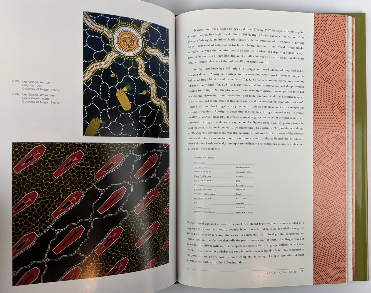 “Donna Leslie, a Post-doctoral Research Fellow at The University of Melbourne, sets out to demonstrate how Aboriginal art has questioned the ‘assimilationist’ policies which prevailed in Australia from the 1930s to the 1970s. Her rigorous and sustained argument, supported by an impressive array of important visual images, reveals an extensive grasp of issues relating not only to the practice and history of art, but also in fields of anthropology, ethnology and sociology. The book is a rare presentation of aspects of the history of Aboriginal art from an Aboriginal perspective, and provides fresh ways of understanding Aboriginal experience. While the author acknowledges the problems faced by Aboriginal peoples, particularly those associated with the former policy of assimilation, her message is positive and encourages a deepening understanding of Aboriginal art, culture and peoples in the spirit of reconciliation. Moreover, she addresses the development of Aboriginal art in the modern Australian city, as well as in the more traditional environment of the land.” (publisher’s blurb)