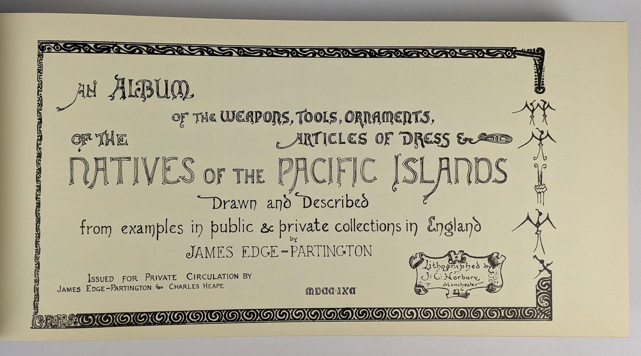 Drawn and Described from examples in public & private collections in Australasia by James Edge-Partington. Facsimile Edition of the complete Three Series of the very limited edition published by Edge-Partington and Heape 1890-98.