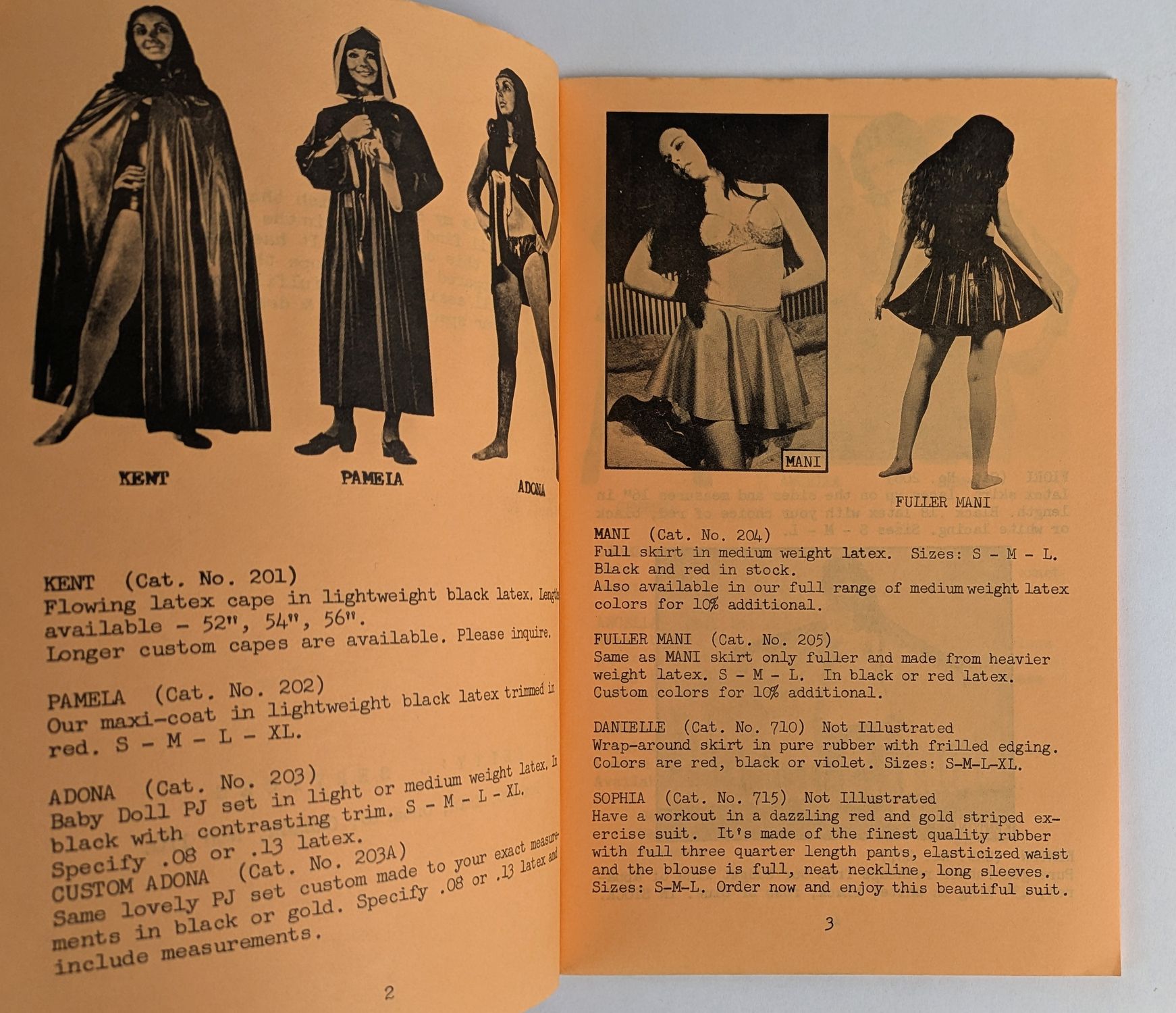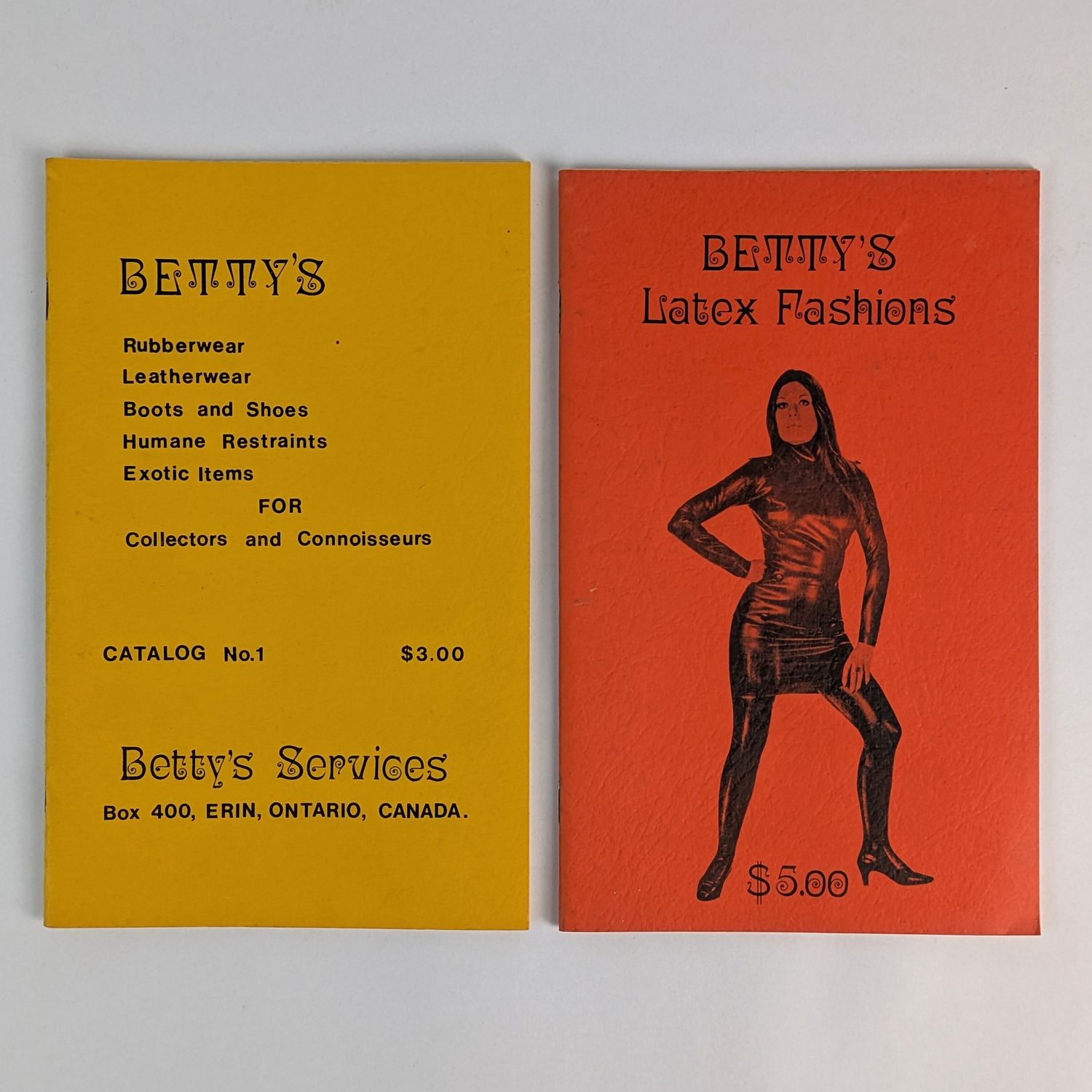 The first two catalogues for Canadian mail order rubberwear business Betty’s Latex Fashions.