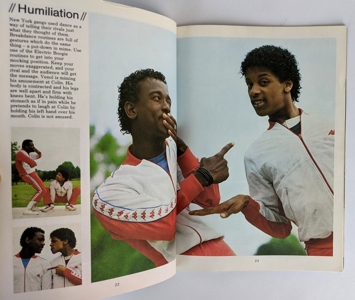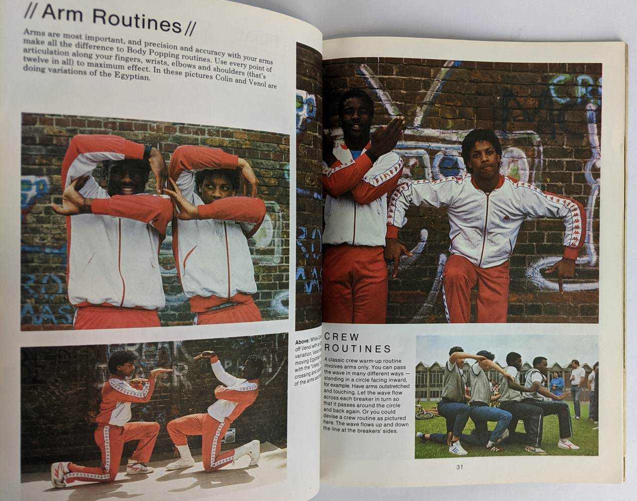 UK b-boys Colin and Venol show you how to body pop and break with detailed instructions. Illustrated throughout in fine 1980s style. Compiled by Lucy Alford. Photographs by Clare Muller.