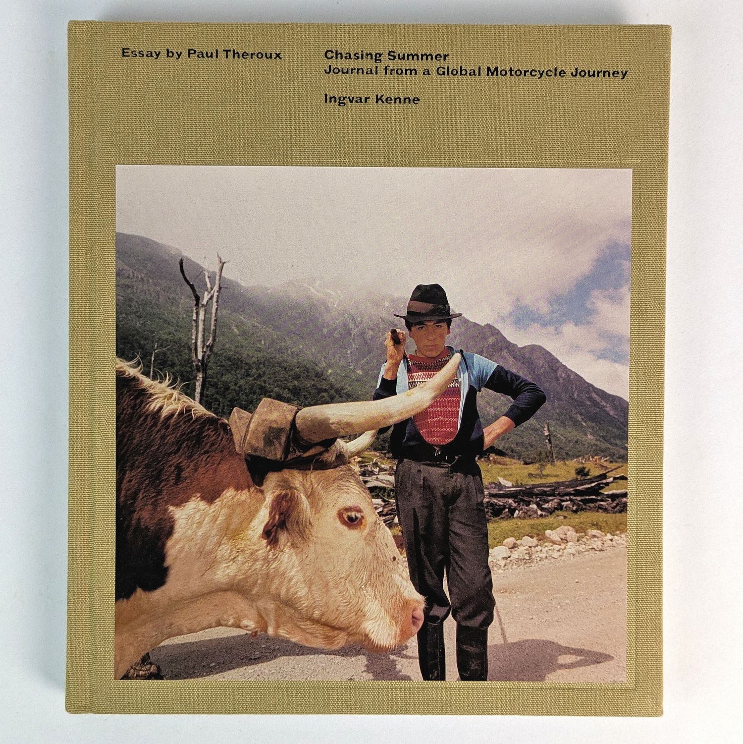 Photo book of the photographer’s transcontinental journey by motorbike. Essay by Paul Theroux. This copy signed by Kenne.