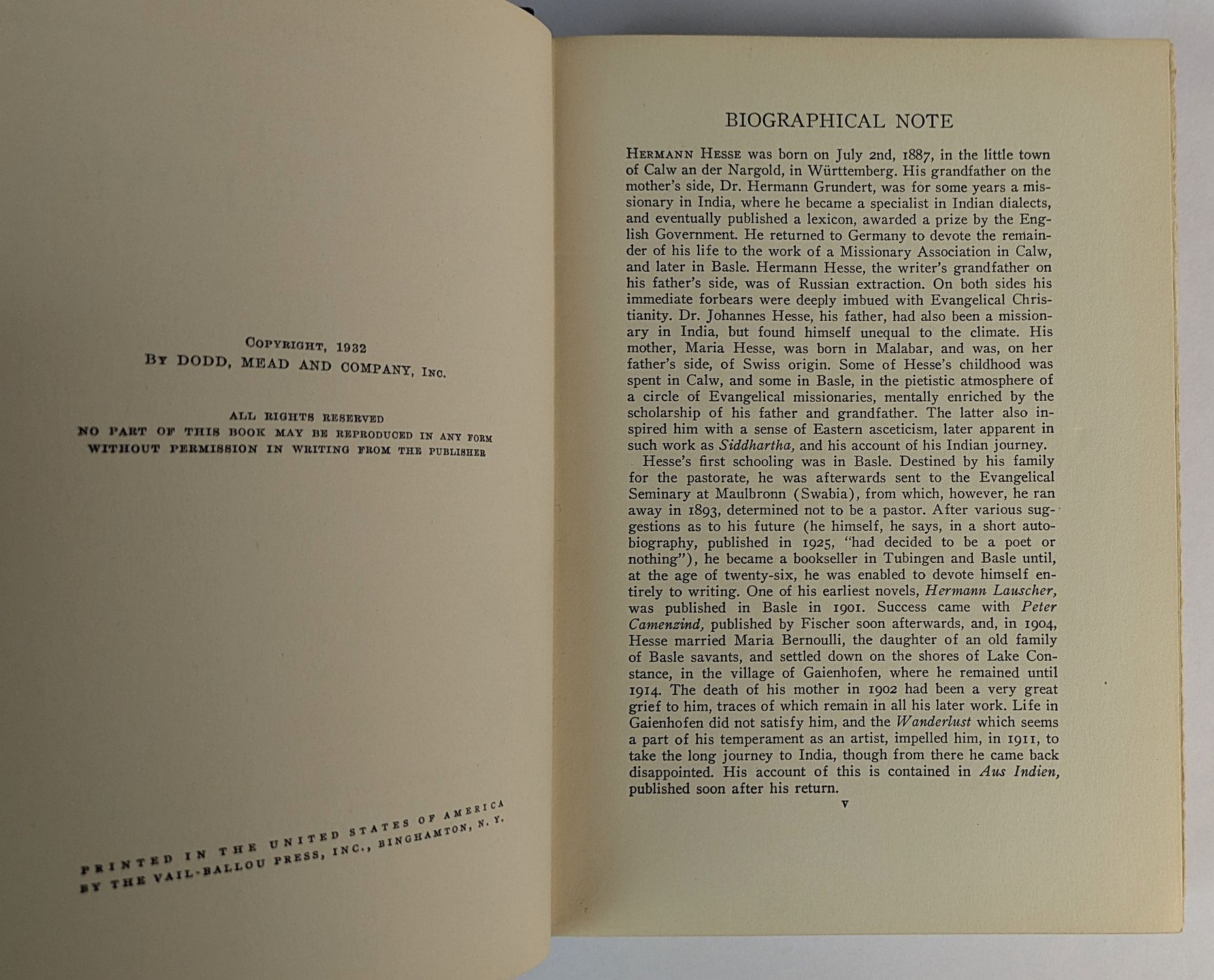 Hermann HesseNew York: Dodd, Mead, and Company, 1932.