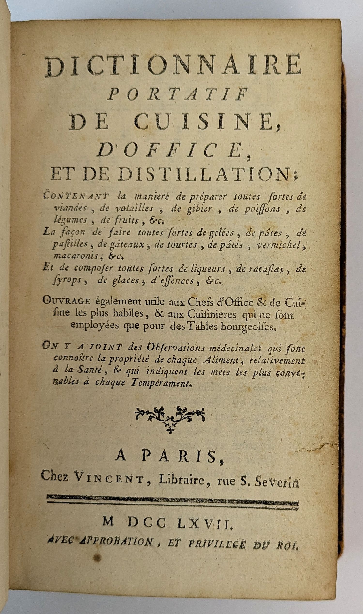 Dictionnaire Portatif de Cuisine, d’Office, et de Distillation;