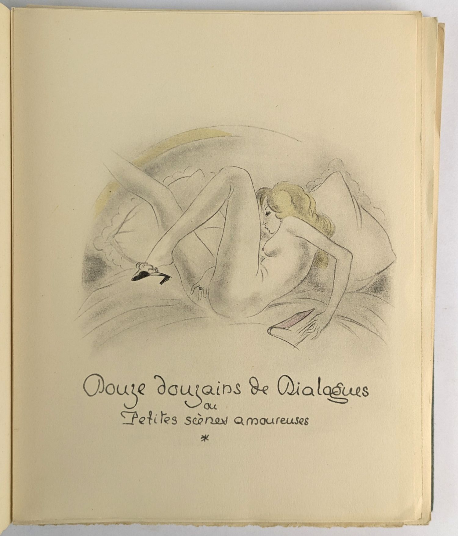 Facsimile edition (c. 1935) of an erotic manuscript illustrated with 12 coloured plates attributed to Andre Collot. One of 100 numbered copies. DUTEL 1428.