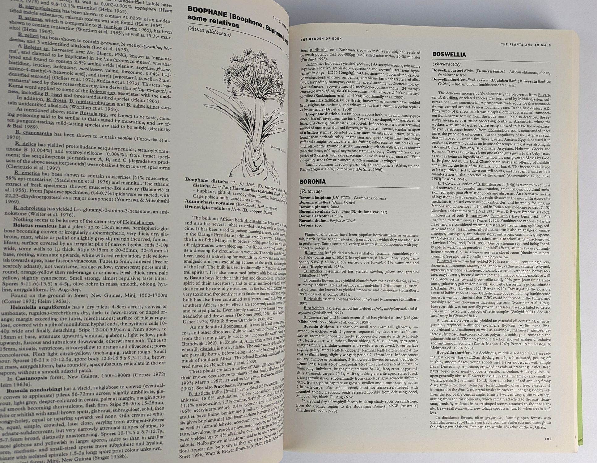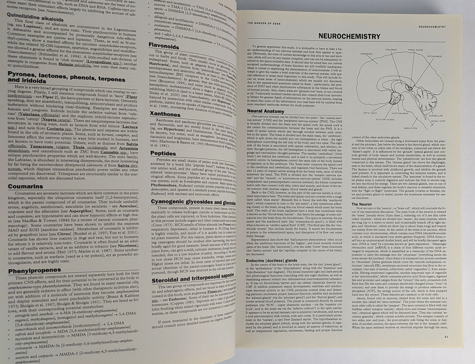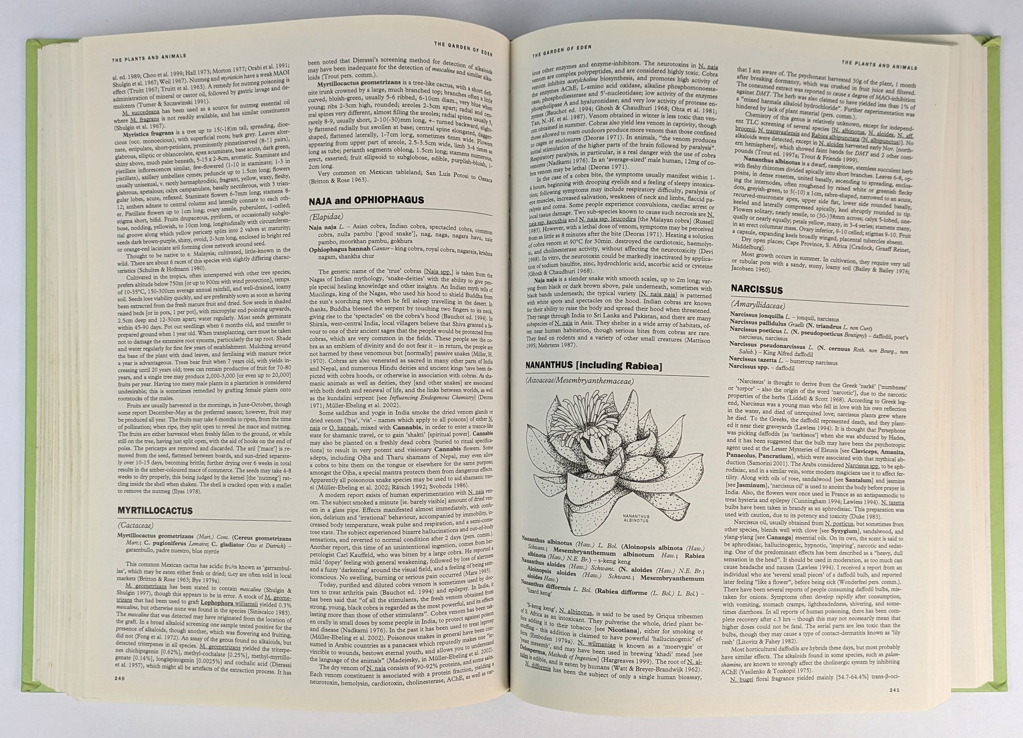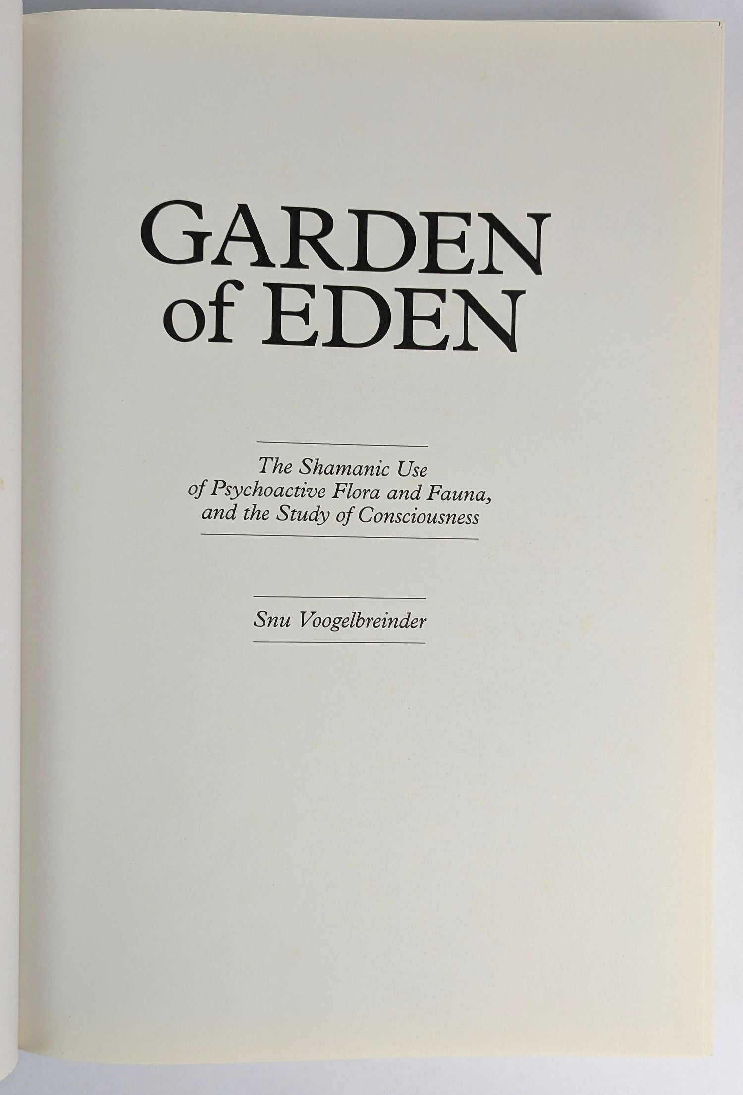 First and only printed edition of the encyclopaedic magnum opus of Australian ethnobotanist Snu Voogelbreinder in which is explored “the vast world of psychoactive plants, animals and other organisms, and their uses in shamanism, spiritual exploration and healing. Encompassing scientific research, personal experience, ancient knowledge and esoteric philosophies, a multidisciplinary approach is taken, giving a wide view of the effects of natural substances on the mind, with an emphasis towards beneficial outcomes. Preliminary information is given regarding neurochemistry, drug-free consciousness alteration, and methods of use, from cultivation or wild-sourcing through to harvesting, processing, consumption, and navigation of the effects. Thousands of species from over 1700 genera are discussed, with over 440 genera covered in greater detail, including botanical and zoological descriptions. Also included are a detailed index of natural chemicals of particular interest, and a huge bibliography containing thousands of reference entries.” (rear cover) Initially published in a limited run of 500 copies, less were distributed due to printing errors. Only 2 copies held in institutions, at Purdue University and the National Library of Australia. This copy signed by Snu on the date of launch at the Australian psychedelic symposium EGA, 2009.