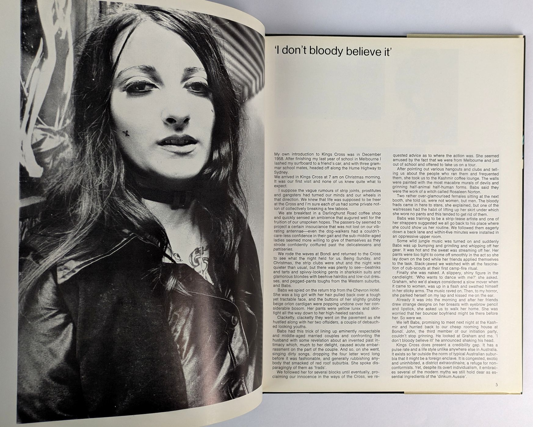 Documentation of Sydney’s Kings Cross in the early 1970s. Showgirls, servicemen, freaks, hippies, sex, drugs, music art, and more. Features a spread on The Witch of Kings Cross, Rosaleen Norton.