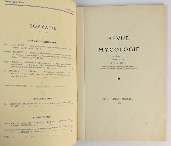 Single number of the Revue de Mycologie with a feature article by Henri Michaux on psilocybin.