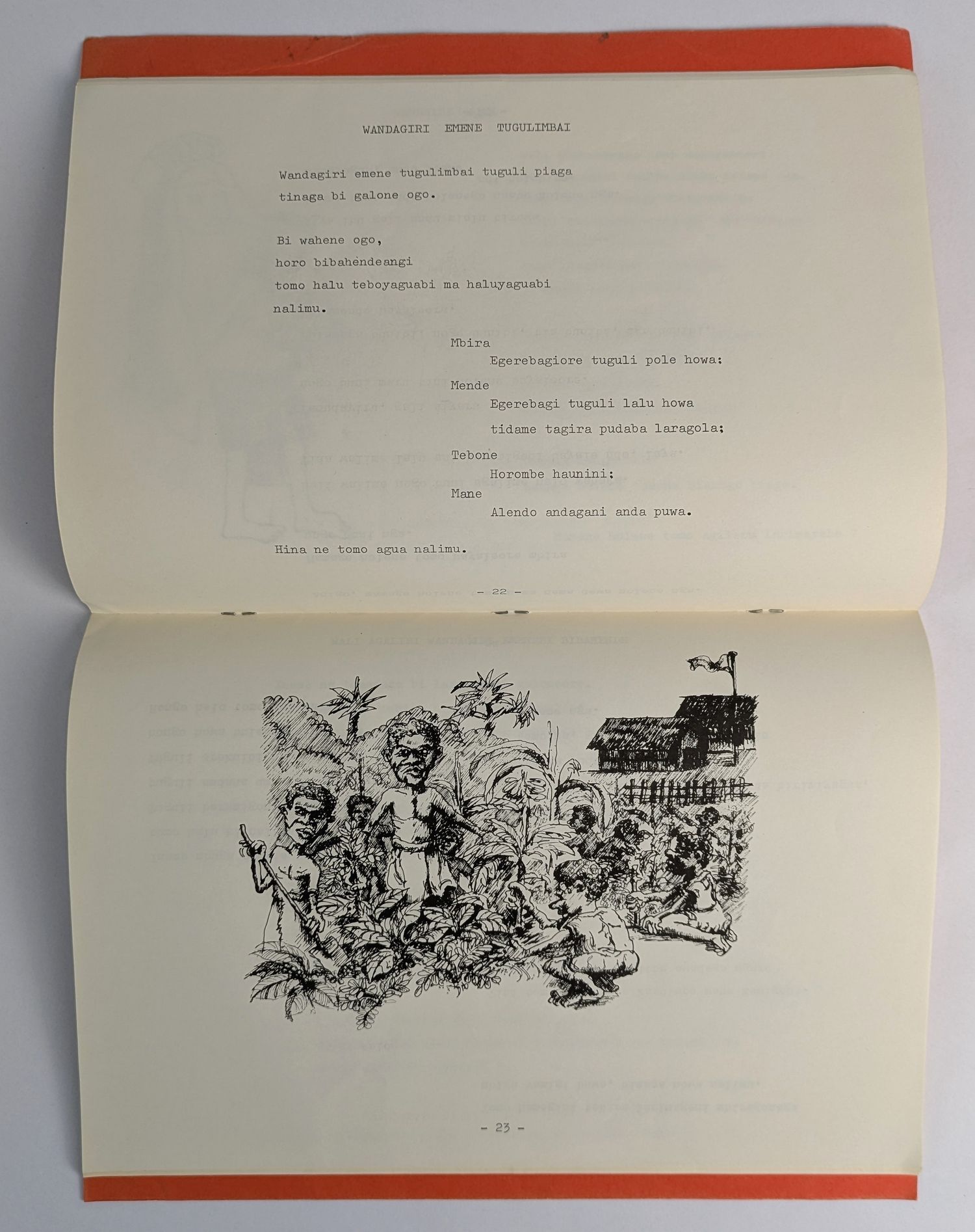 21cm x 29.5cm. [ii], 46 pages, black and white illustrations. Illustrated saddle-stapled wrappers. Text is in Huli.