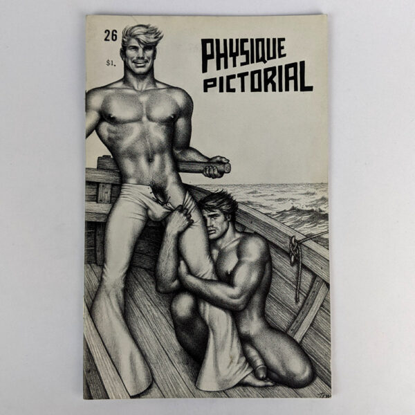 Single 1970s issue of the most popular of beefcake magazines, Physique Pictorial, produced by Bob Mizer’s AMG. Early issues feature scantily clad athletic men in fitness poses together with homoerotic artwork by Tom of Finland, Harry Bush, George Quaintance, and others. If you can stayed focused the text provides insight into gay culture and rights at the time, as well as details on the models and artwork. Into the late 1960s and 1970s as the laws around censorship change, the beefcake physique magazine became more naked and blatantly homoerotic.