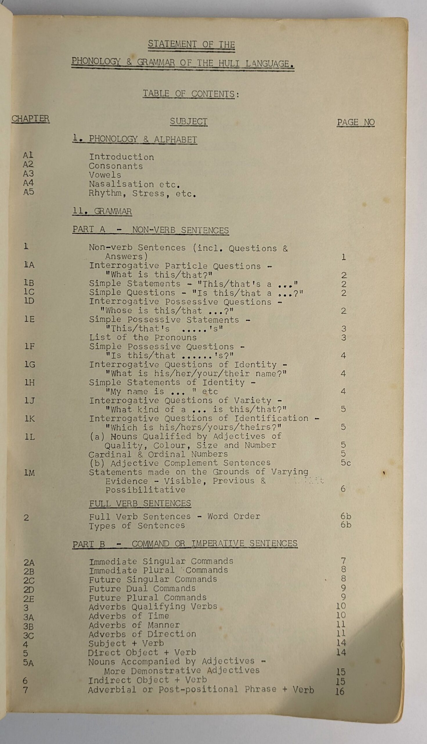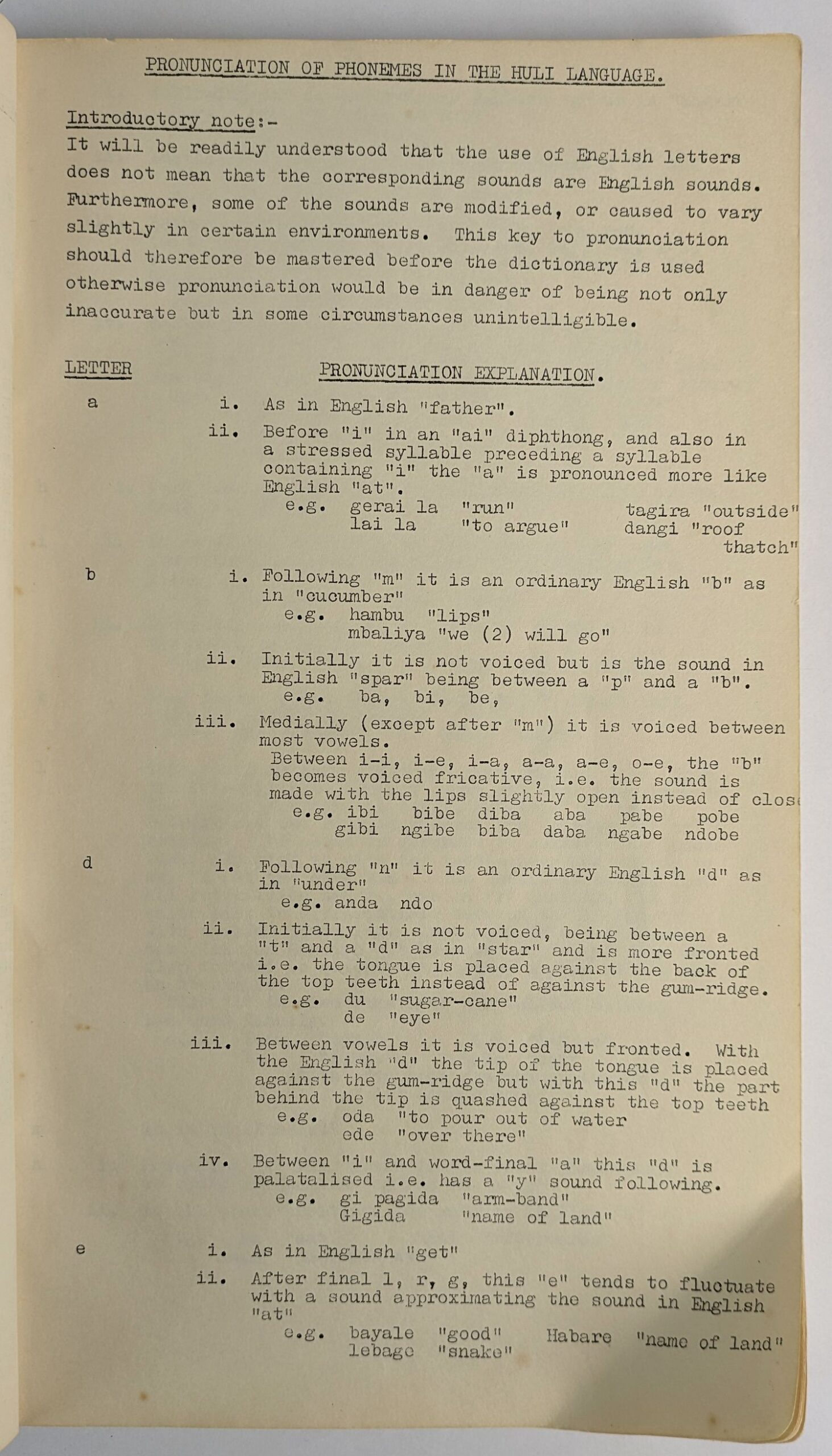 Unpublished, circulated among scholars and community offices by the Australian missionary linguists W. M. & Joan Rule. Single copy recorded in OCLC, at UC San Diego. This copy with the bookplate of tribal art dealer Philip Goldman, previous owner markings of the Huli Literacy Office, and some marginalia.