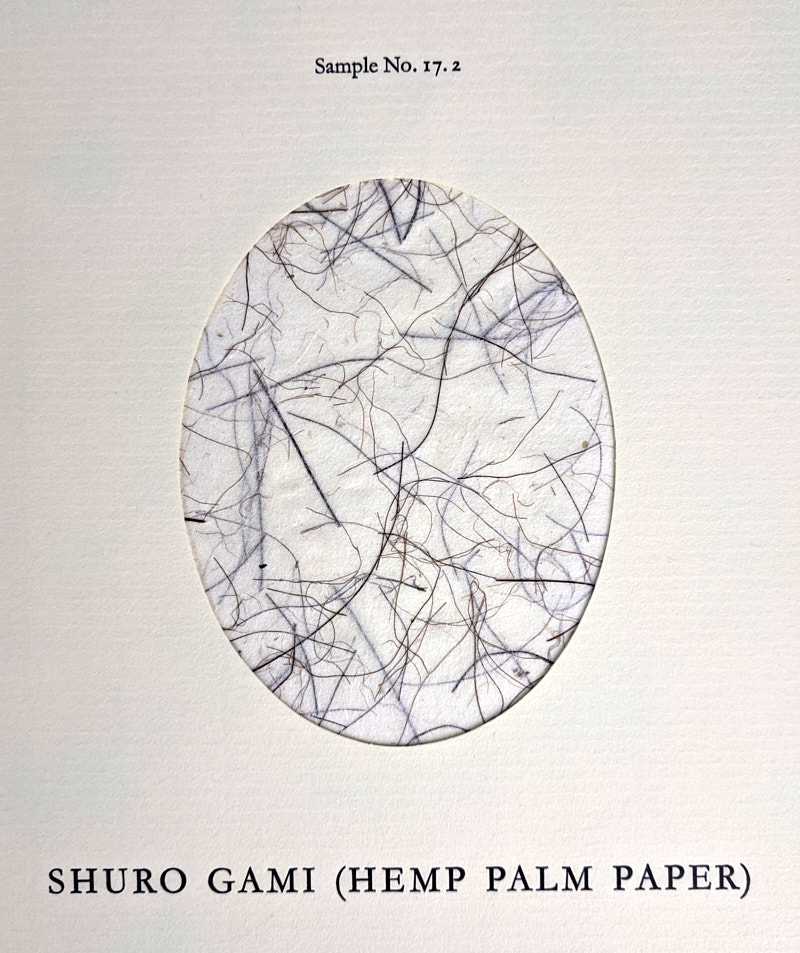 In the early 1980s Fred Siegenthaler, a papermaker himself, wrote to international papermakers he knew from his travels requesting samples of their work made from rare and unusual materials. From these he chose 101 papers from 51 papermakers and purchased 200 sheets of each to produce this limited edition box set of samples with accompanying book. Papers in this collection come from makers in The Netherlands, Mexico, USA, Denmark, Brazil, Philippines, Germany, Israel, Australia, Japan, Switzerland, Scotland, Belgium, Egypt, England, and Czechoslovakia, and are made from materials including asparagus, canna lily, carrots, cedar bark, corn husks, kangaroo grass, hemp, laver, leather, pampas grass, papyrus, petmoss, potato stalks, red hot poker, suksuka, stinging nettle, and other exotic ingredients. The work is limited to 200 copies, the first 20 of which comprise the special edition with an additional 19 samples. This copy is one of the regular edition and is numbered 114 of 200, signed by the author, and includes the original purchase invoice also signed by Siegenthaler.