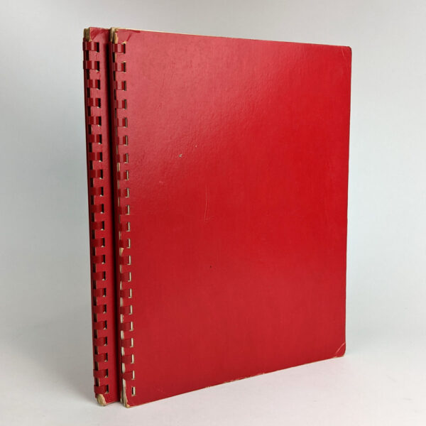31.5cm x 24cm. [62], [64] pages, black and white illustrations. Plain red boards, comb bound.