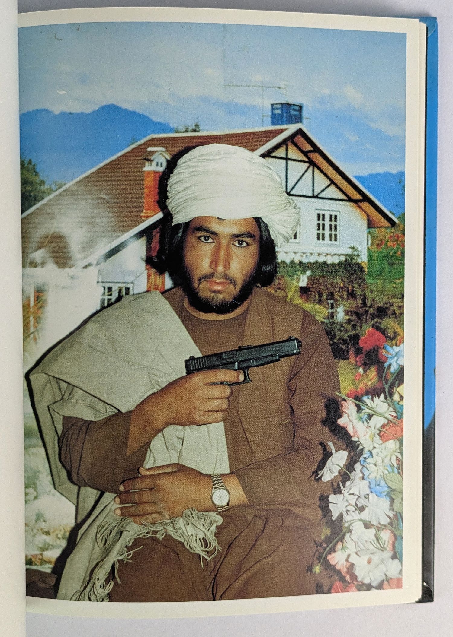 “These portraits of Taliban soldiers were collected by Thomas Dworzak during his coverage of the fall of the Taliban regime in 2002. It is thought that most of these pictures are from Taliban members who had them taken in early November 2001, but could not pick them up as they had to flee the advancing opposition and United States’ bombing. The Taliban interpretation of Islamic rules stated photography or any depiction of living beings (humans or mammals) was illegal. But when passport photography was re-allowed, some Taliban members would ask to pose for a more flattering, retouched portrait secretly taken in the back room of the studio. The pictures were taken by Afghan photographers in Kandahar at the studios Shah Zadah (Son of the King/Shah), Roshan (Light), and Nazir Photographer.” (Magnum Photos)