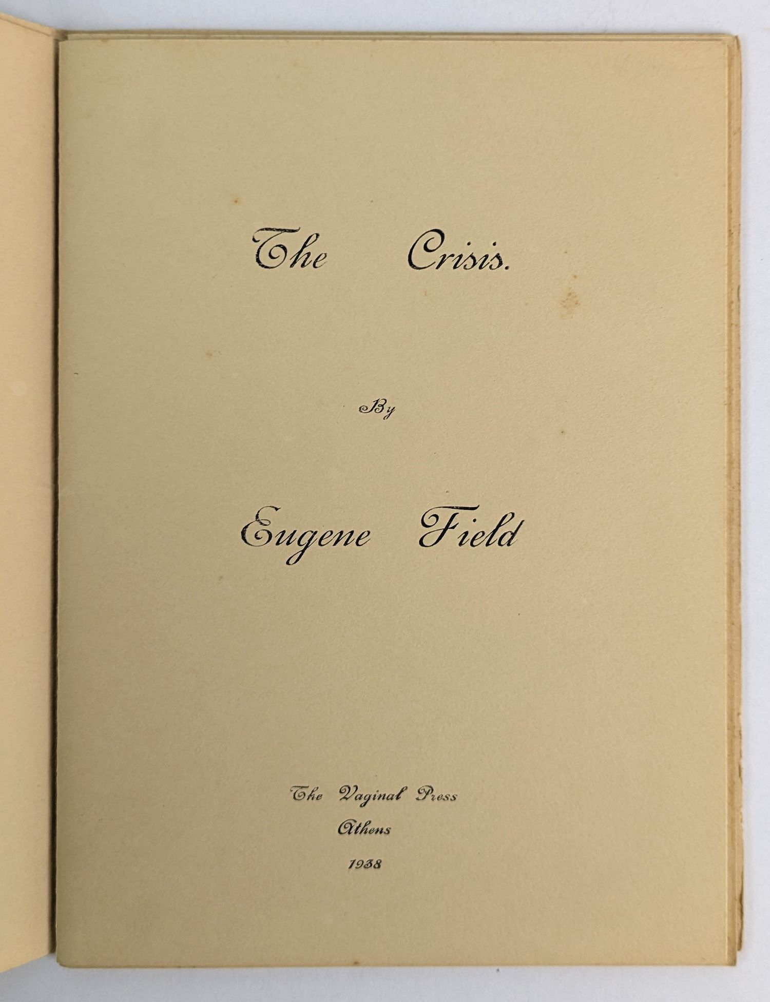 Colin B. Berckelman, Eugene FieldAthens [ie. Sydney]: The Vaginal Press, 1938.