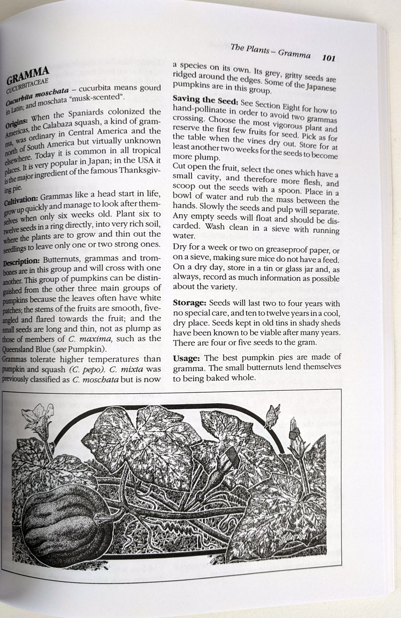 “The book begins with eight chapters on the issues around seeds globally and the practicalities of saving your own seeds. Three quarters of the book is on 117 food plants, mostly vegetables, with the remainder culinary flowers, herbs and spices. Each plant has a description, its wild origins, how to cultivate it, save its seeds or otherwise propagate it, storage of the seed and its medicinal and culinary uses. Permaculture, biodiversity, organics and companion planting are the principles that underlie the contents of this book. This has been a reliable reference book not just on propagating and breeding your own vegetables, but also for how to grow and use both common (corn, tomatoes, beans, cabbages, etc.,) and unusual vegetables, such as tumeric, peanuts and several species of gourds. Included are many Asian and South American vegetables, herbs and spices.” (publisher’s blurb) Illustrated by Alfredo Bonanno. Preface by Bill Mollison.