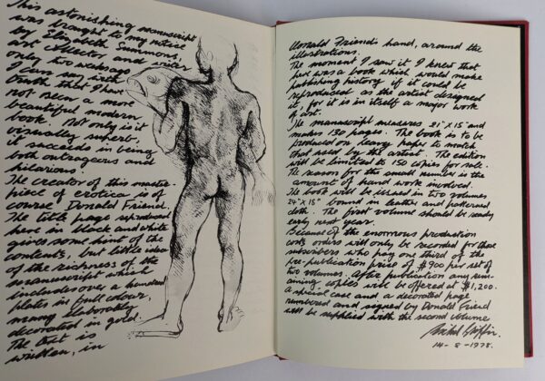 A preliminary publication to Friend’s grand Bumbooziana, a fantastic, exotic, and erotic journey through foreign lands, illustrated by all manner of wild and outrageous acts of wanton sexual abandonment. This work largely comprising sketches, limited to 350 numbered copies signed by Friend.