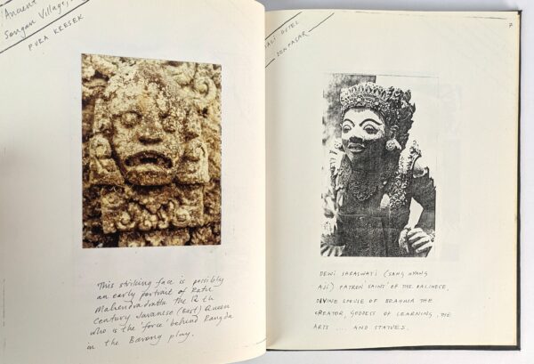 “Sculpture is the essence of Balinese Temple & Courtyard decoration: as guardian, shrine angel, diety effigy, bas relief or carved gate. The Balinese have been carving up walls, gates and shrines for at least 1000 years and in that time have digested quirks, twirls, borders, styles, movements and colouring techniques from various foreign cultures: Chinese, Javanese, Portuguese, Dutch, 20th Century Urban. The incredibly dynamic nature of Balinese Art is best expressed in carving and sculpture.” (from foreword) Made Wijaya (born in Sydney as Michael White, 1953-2016) was a landscape architect who left Sydney for Bali as a break from architectural studies at University of Sydney and stayed, immersing himself in the Balinese culture, consorting with royalty, and in 1975 was renamed Made Wijaya by a priest in a Hindu temple ceremony. This work continues his Fotokopi series of architecture/artists books focusing on sculpture, from the mythological to the erotic. This copy with 4 original colour photographs pasted in (copies are known to have differing numbers of added photographs). Issued in a numbered and signed edition of 500 copies, this one of an unknown number of Special Gift Edition copies further inscribed by Wijaya to the title page.