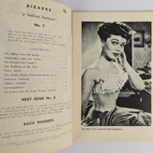 Montreal: Bizarre Publishing Co., 1952.Single issue of the foundational fetish magazine of the 20th century. Created, edited, and largely illustrated by John Alexander Scott Coutts (1902-1962), better known by his pseudonym John Willile. Bizarre ran for 26 issues between 1946 and 1959 and remains the most influential fetish periodical of its era. Coutt’s work profoundly shaped later artists such as Eric Stanton, Gene Bilbrew, and erotica publisher Leonard Burtman. Born in Singapore to British parents, Coutts lived in Brisbane and Sydney from 1926 to 1945, it was in Australia that he developed his signature fetish aesthetic centred on high heels, corsetry, and bondage. During this period he produced numerous photographs and drawings, often featuring his wife and model Holly Anna Faram, many of which informed the imagery of Bizarre’s early issues. After a short stint in the Australian Military Forces, Coutts moved to North America in 1945, publishing Bizarre soon after. Though Holly stayed in Australia, Coutts did take with him the influence of the early 20th century underground Australian sexual sub-cultures that had shaped his art over the preceding years. Bringing this Australian perspective to North America and working with other pioneers of the American fetish movement such as Charles Guyette and Irving Klaw, Bizarre became the fashion and fetish icon it is today. Not without his run-ins with the law, Coutts was careful to avoid censorship, framing Bizarre as a fanzine of extreme fashion, largely avoiding nudity, homosexuality, and extreme violence, though it is clear that the pages of Bizarre were a safe space for sexual expression. As he writes at the opening of Vol. 3: The magazine for pleasant optimists who frown on convention. The magazine of fashions and fantasies fantastic!