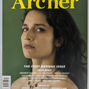 Melbourne: Archer Magazine, 2020.“Archer Magazine is an award-winning print publication about sexuality, gender and identity. It is published twice-yearly in Melbourne, Australia, with a focus on lesser-heard voices and the uniqueness of our experiences. This issue features words by Andrew Farrell, Indiah Money, Kai Clancy, Laniyuk, Rose Chalks, SJ Norman, Timmah Ball, Tre Turner, William Cooper; and images by Moorina Bonini, William Cooper, Ebony Daniels, Edwina Green, Morgan Hickinbotham, Jacinta Keefe, Hailey Harper Moroney, SJ Norman, Bodie Strain, Pierra Van Sparkes, and Toz Withall.”