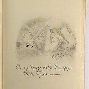 : No publisher, No date.Facsimile edition (c. 1935) of an erotic manuscript illustrated with 12 coloured plates attributed to Andre Collot. One of 100 numbered copies. DUTEL 1428.